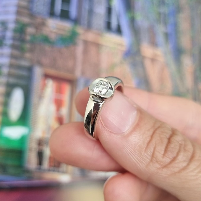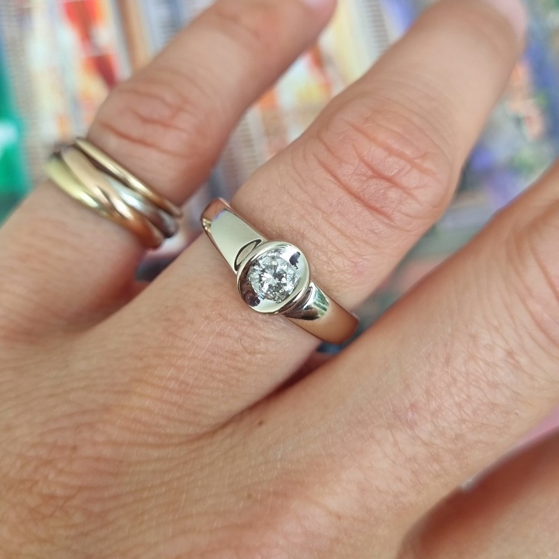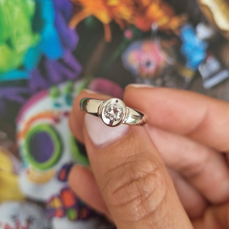 Luna is een verfijnde 14 karaat gouden ring, gezet met een 0.25 ct lab-grown diamant in een bijzondere rub-over zetting. Tijdsloos, duurzaam en met een schittering die indruk maakt.